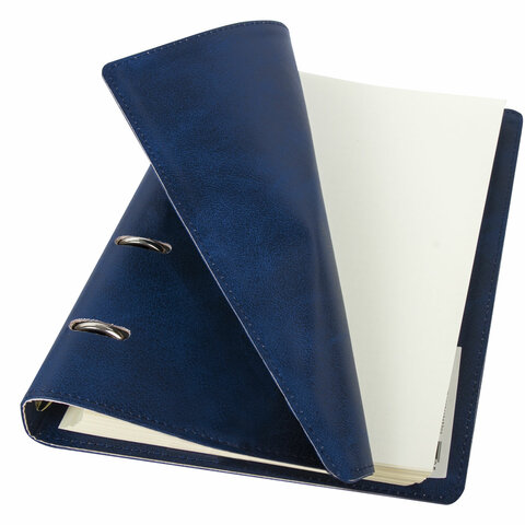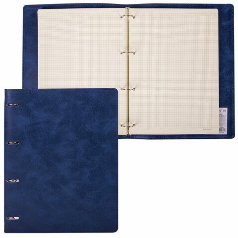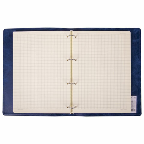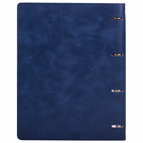 Тетрадь на кольцах БОЛЬШАЯ А4 (240х310 мм), 120 листов, под кожу, клетка, BRAUBERG "Main", синий, 404510
