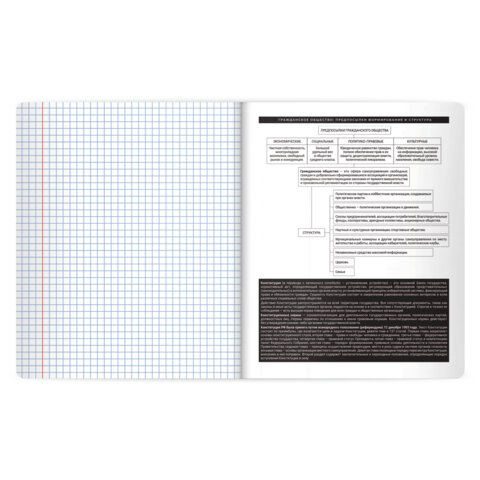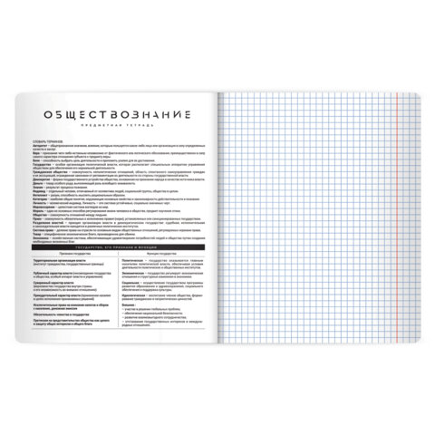 Тетрадь предметная BLACK MODE 48 л., пластиковая обложка, ОБЩЕСТВОЗНАНИЕ, клетка, подсказ, BRAUBERG, 405515