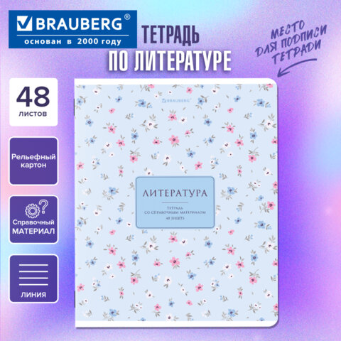 Тетрадь предметная "BLOSSOM" 48 л., рельефный картон, ЛИТЕРАТУРА, линия, подсказки, BRAUBERG, 405598