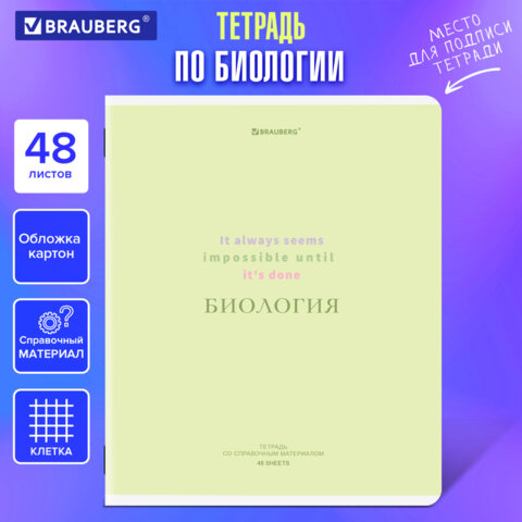 Тетрадь предметная CREATIVE 48 л., обложка картон, БИОЛОГИЯ, клетка, подсказ, BRAUBERG, 405112