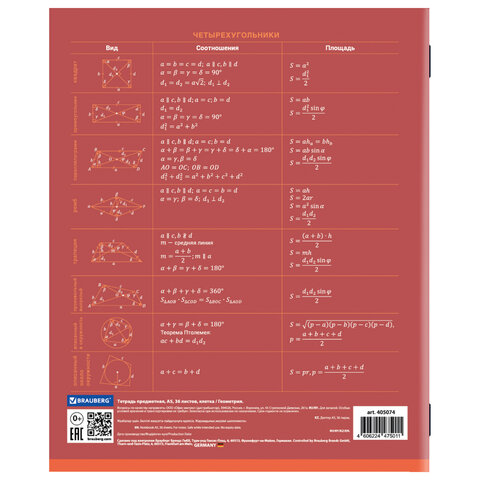 Тетрадь предметная "КОЛОР" 36 л., обложка мелованная бумага, ГЕОМЕТРИЯ, клетка, BRAUBERG, 405074