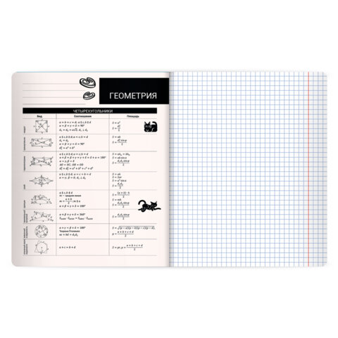 Тетрадь предметная КОТ-НЕПОСЕДА 48 л., пластиковая обложка, ГЕОМЕТРИЯ, клетка, подсказ, BRAUBERG, 405532