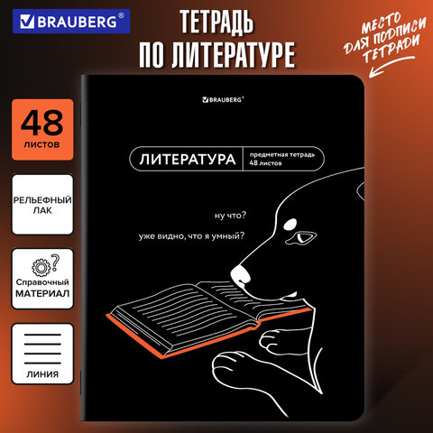 Тетрадь предметная МЕМЫ 48 л., TWIN-лак, ЛИТЕРАТУРА, линия, подсказки, BRAUBERG, 405104