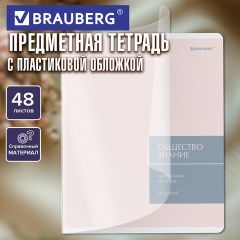 Тетрадь предметная MonoPastel 48 л., пластиковая обложка, ОБЩЕСТВОЗНАНИЕ, клетка, подсказ, BRAUBERG, 405502