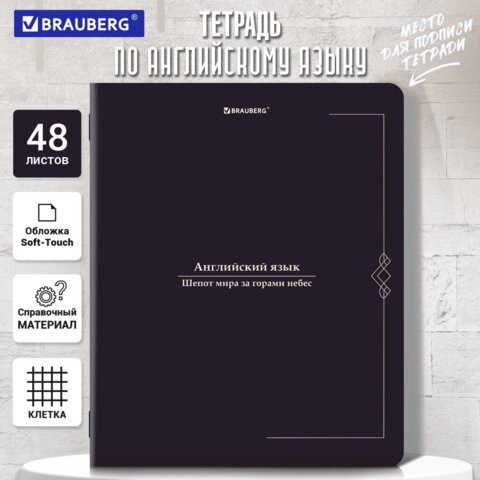 Тетрадь предметная VINTAGE 48 л., SoftTouch, АНГЛИЙСКИЙ ЯЗЫК, клетка, подсказ, BRAUBERG, 405150