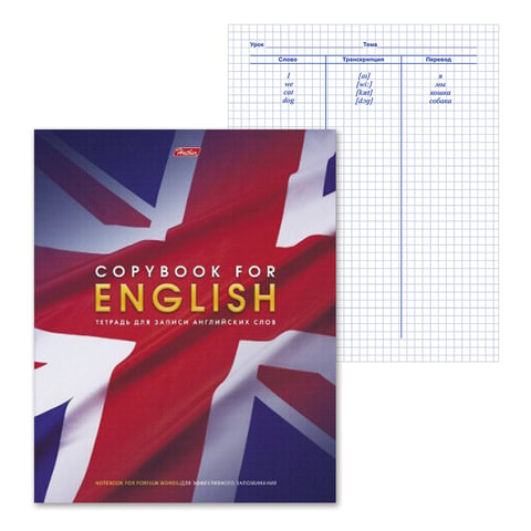 Тетрадь-словарь для записи английских слов А5 48 л., скоба, клетка, HATBER, "Английский флаг, 026918, 48T5B5_10697