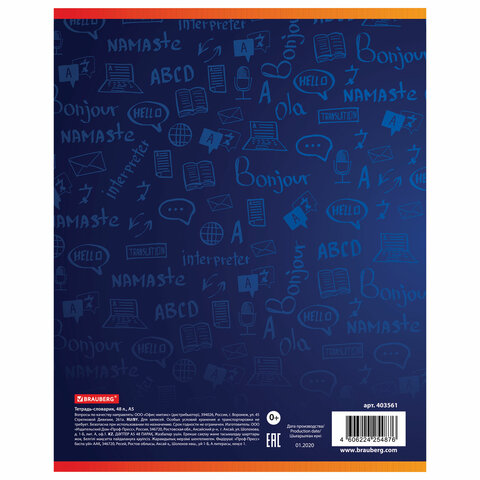 Тетрадь-словарик BRAUBERG предназначена для записи новых и изученных слов, их повторения и самопроверки. Каждая страница словарика поделена на три части (слово, транскрипция, перевод).