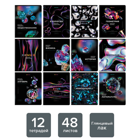 Тетради предметные, КОМПЛЕКТ 12 ПРЕДМЕТОВ, 48 л., глянцевый УФ-лак, BRAUBERG, "MAGICAL", 404610