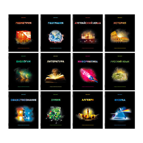 Тетради предметные, КОМПЛЕКТ 12 ПРЕДМЕТОВ, 48 л., глянцевый УФ-лак, BRAUBERG, "SHADE", 404324