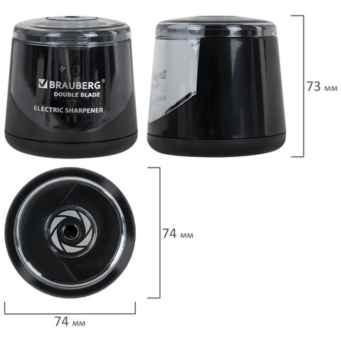 Точилка электрическая BRAUBERG DOUBLE BLADE BLACK, двойное лезвие, питание от 2 батареек АА, 271336