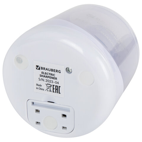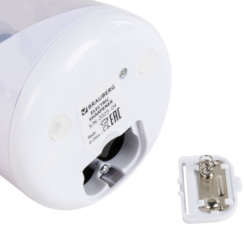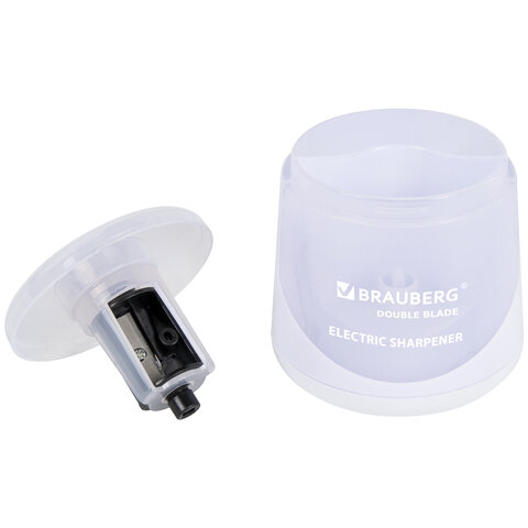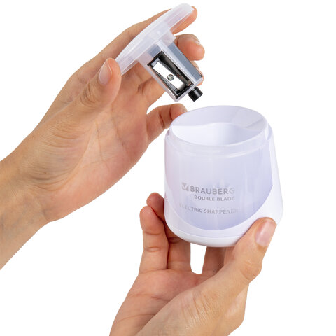 Точилка электрическая BRAUBERG DOUBLE BLADE WHITE, двойное лезвие, питание от 2 батареек, 271337