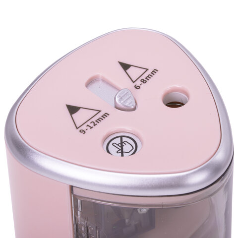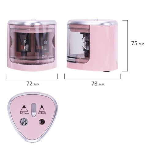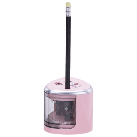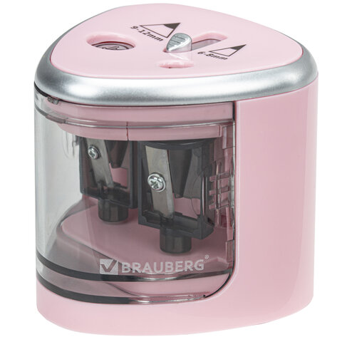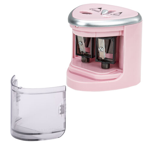 Точилка электрическая BRAUBERG DUAL (для 2 диаметров карандашей!), 4 батарейки АА, розовая, 270579