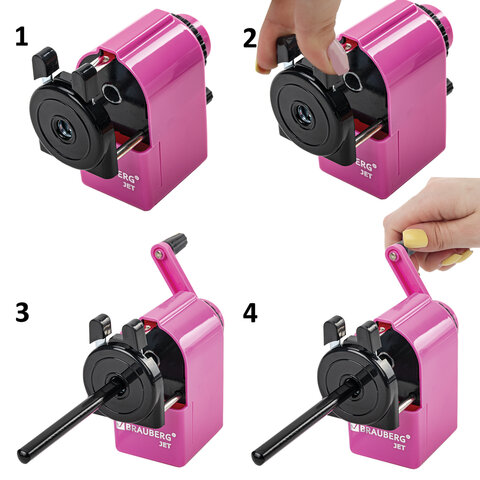 Точилка механическая BRAUBERG "JET", металлический механизм, корпус розовый, 229568