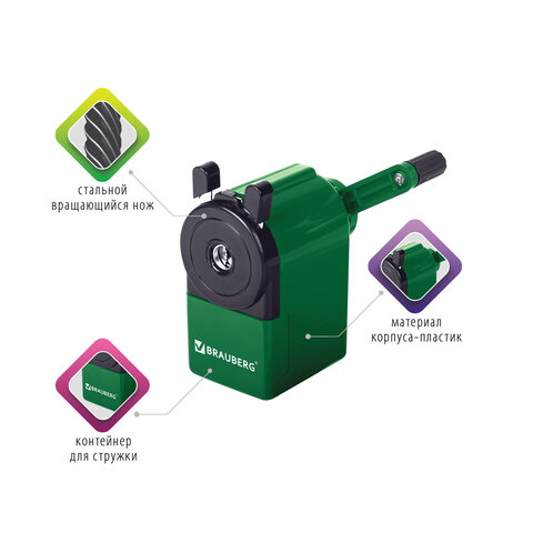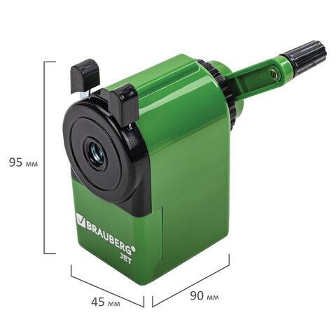 Точилка механическая BRAUBERG "JET", металлический механизм, корпус зеленый, 229571