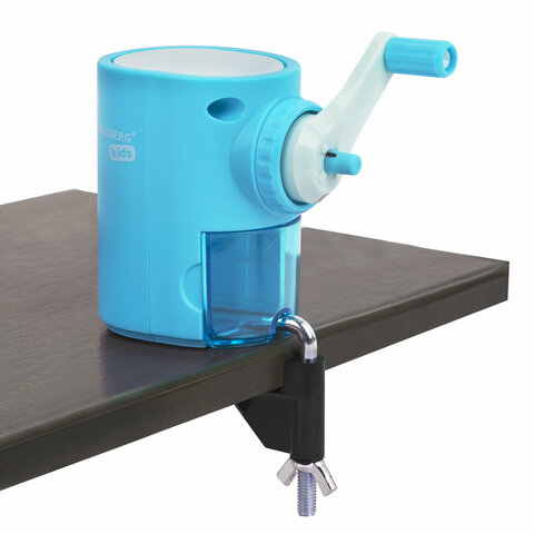 Точилка механическая BRAUBERG KIDS, для простых и цветных карандашей, корпус голубой, крепление к столу, 272005