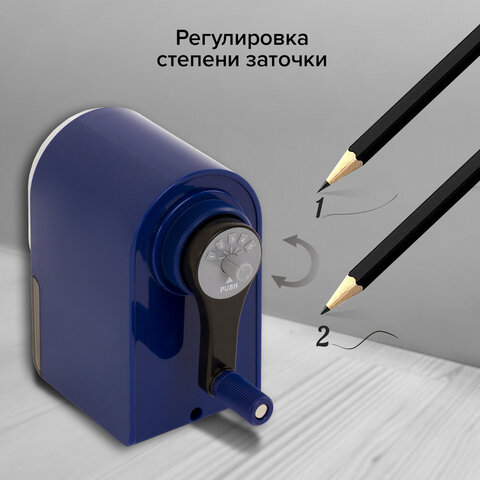 Точилка механическая BRAUBERG "ORIGINAL", для чернографитных и цветных карандашей, крепление к столу, корпус синий, 228480