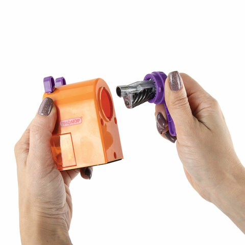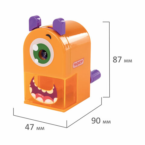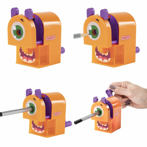 Точилка механическая ПИФАГОР "Монстрик", корпус оранжевый, для чернографитных и цветных карандашей, 228477