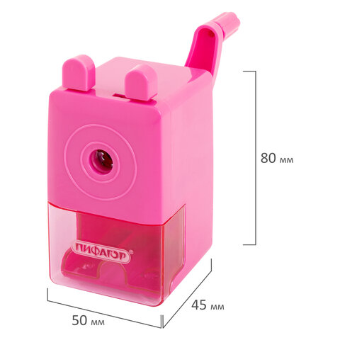 Точилка механическая ПИФАГОР "Study", корпус розовый, 229797
