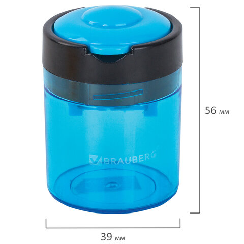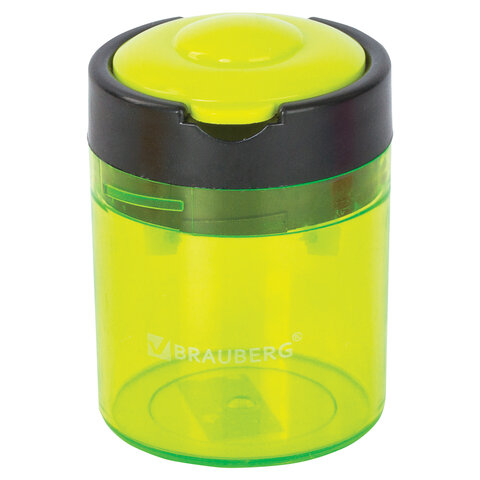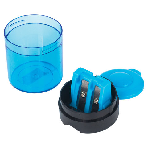 Точилка BRAUBERG "Office Round", 2 отверстия для чернографитных карандашей (в том числе утолщенных), с контейнером, ассорти, 228446