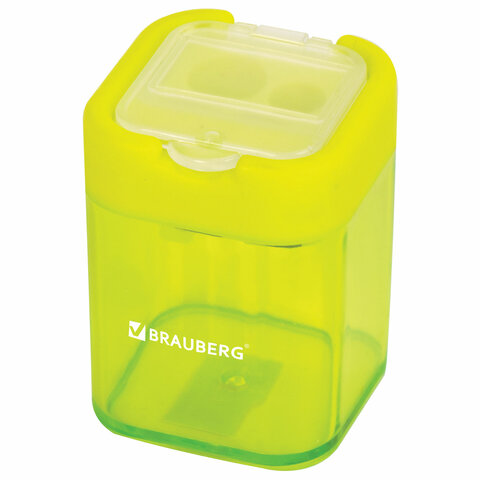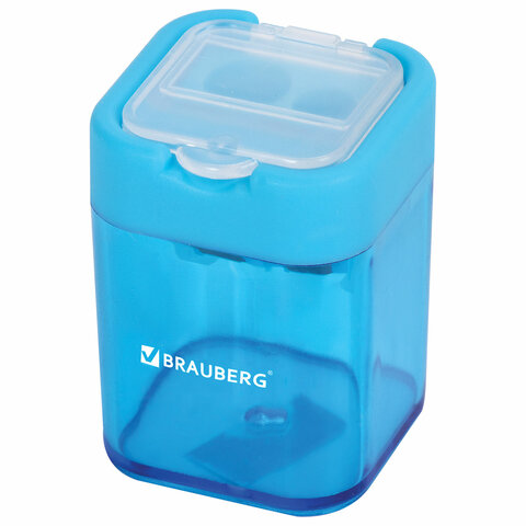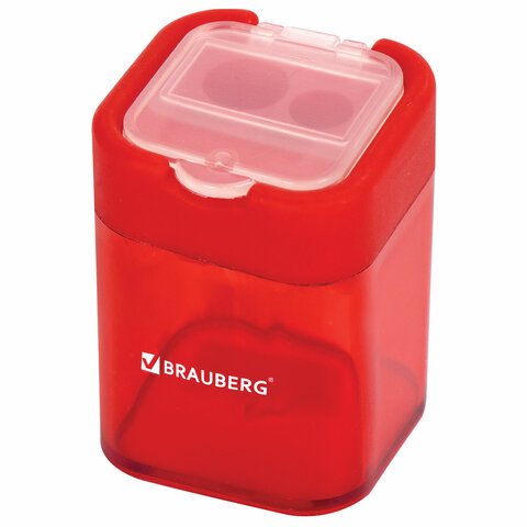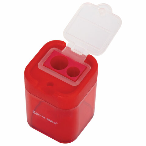 Точилка BRAUBERG "Peak", 2 отверстия для чернографитных карандашей (в том числе утолщенных), с контейнером, пластиковая, ассорти, 226945