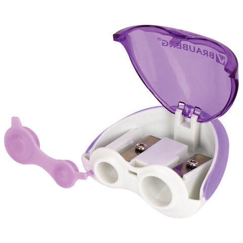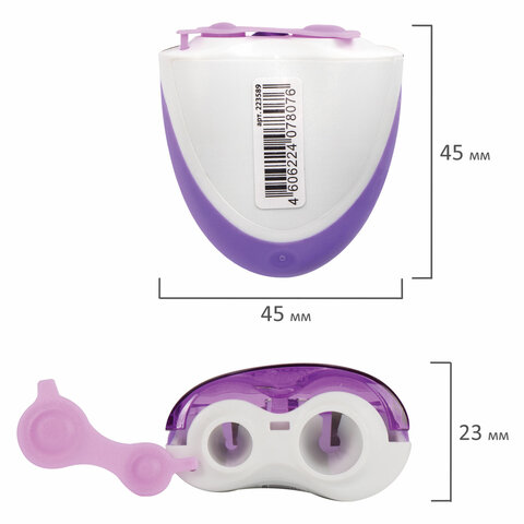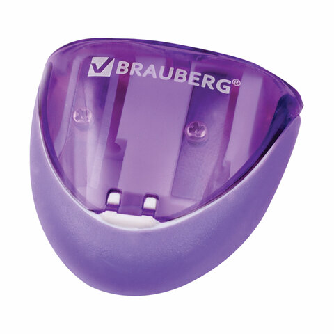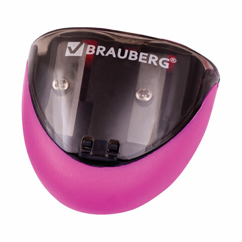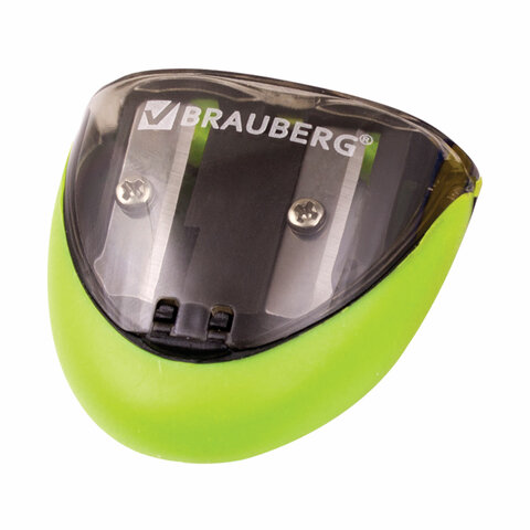 Точилка BRAUBERG "Space", 2 отверстия для чернографитных карандашей (в том числе утолщенных), резиновый упор, с контейнером, ассорти, 223589