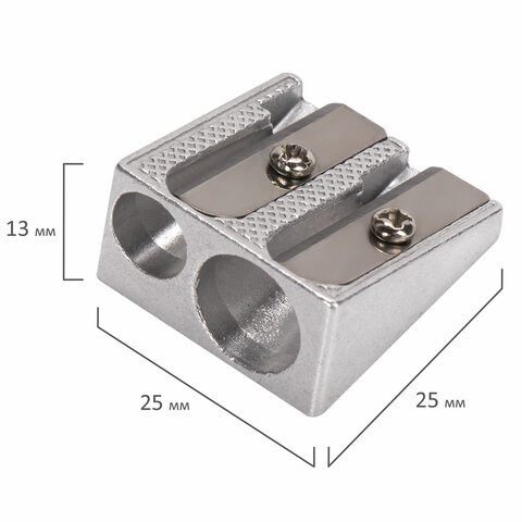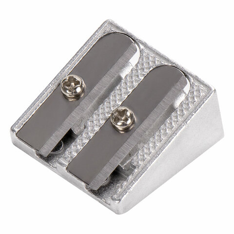 Точилка BRAUBERG "Style", металлическая клиновидная, 2 отверстия для чернографитных карандашей (в том числе утолщенных), 222486