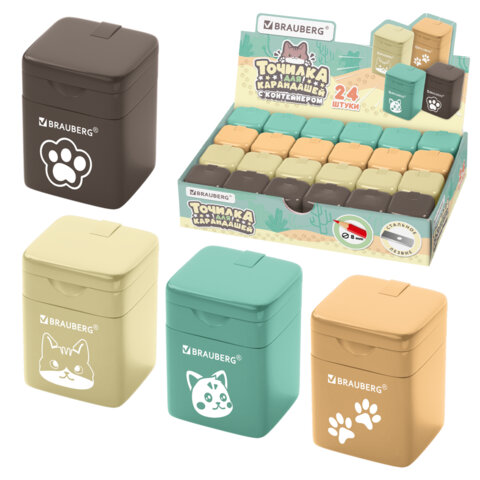 Точилка кросс-серия "МИЛЫЕ КОТЫ", с контейнером, корпус ассорти, BRAUBERG, 273226