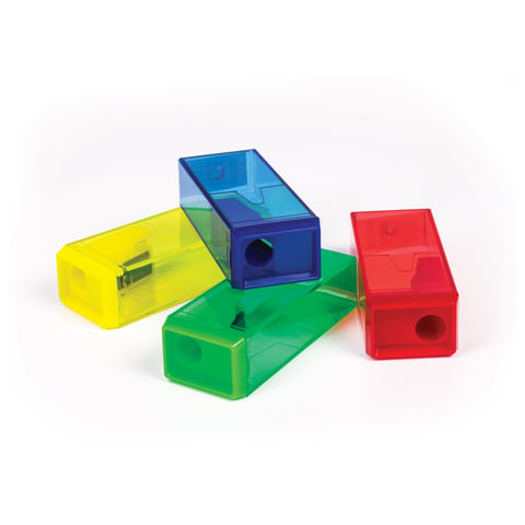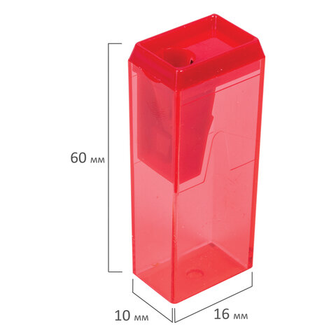 Точилка ПИФАГОР, с контейнером, прямоугольная, пластиковая, тонированный корпус, ассорти, 226530