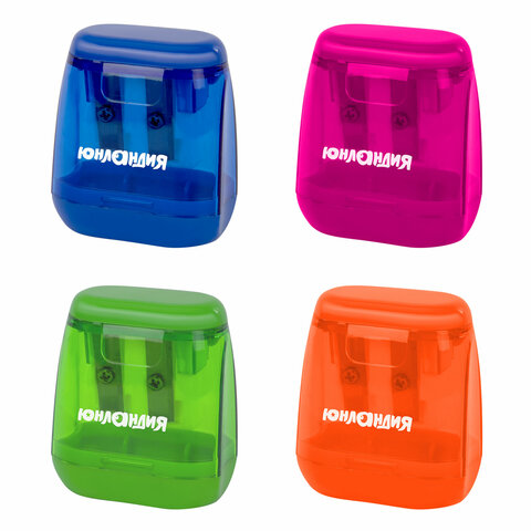 Точилка с контейнером для простых и утолщенных карандашей ЮНЛАНДИЯ "СУНДУЧОК", 2 отверстия, 272506