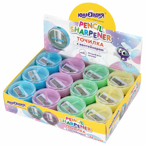 Точилка с контейнером ЮНЛАНДИЯ "ШАРИК ПАСТЕЛЬ", пастельные цвета ассорти, 272509