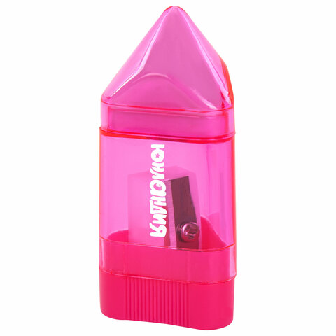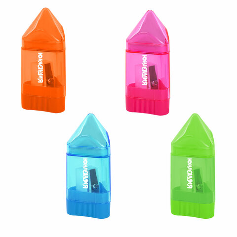 Точилка ЮНЛАНДИЯ "Карандашик" с контейнером и ластиком 2 в 1, НАБОР 4 ШТУКИ, 272508
