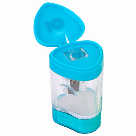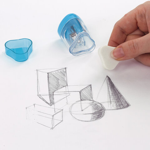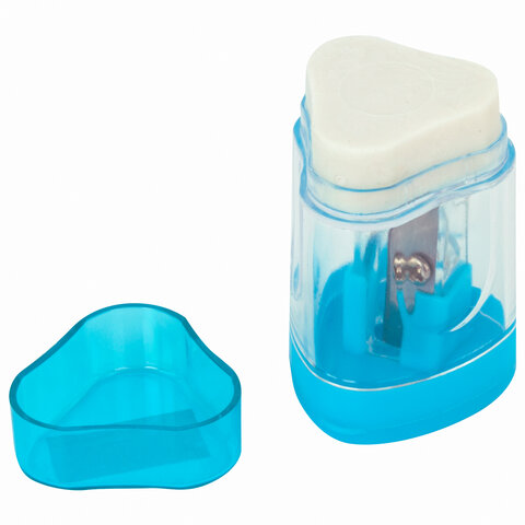 Точилка ЮНЛАНДИЯ "Трио +", со стирательной резинкой, с контейнером, пластиковая, ассорти, 228439