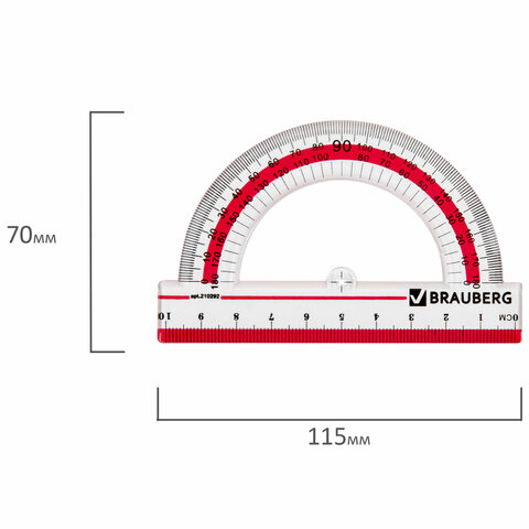 Прозрачный транспортир BRAUBERG предназначен для чертёжных и измерительных работ.