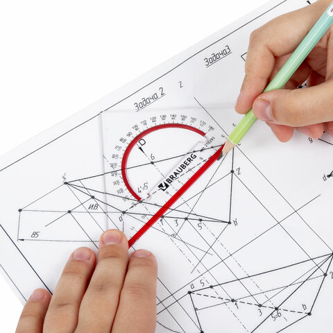 Прозрачный треугольник BRAUBERG с транспортиром предназначен для чертёжных и измерительных работ.