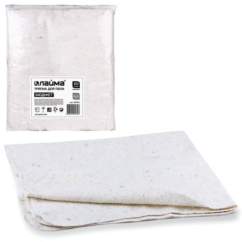Тряпки для мытья пола 80х100 см, КОМПЛЕКТ 20 шт., 190 г/м2, светлое ХПП, 80% хлопок, 20% полиэфир, бюджет LAIMA, КВ, 600842