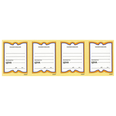 Картонные ценники STAFF наиболее оптимальны для магазинов, торгующих продуктами питания, поскольку картон сохраняет форму при изменении влажности и температуры. Удобные поля позволяют нанести информацию о фирме, наименовании и цене.