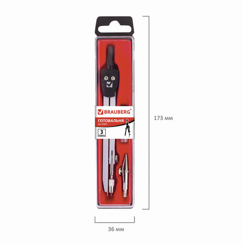Готовальня BRAUBERG "Architect", 3 предмета: циркуль 135 мм, рейсфедерная вставка, грифель, 210331
