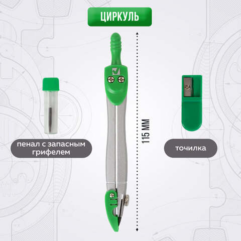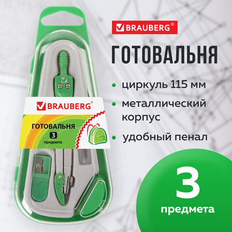 Металлическая готовальня BRAUBERG "Klasse" предназначена для выполнения чертежных работ. Для учеников младших и средних классов.