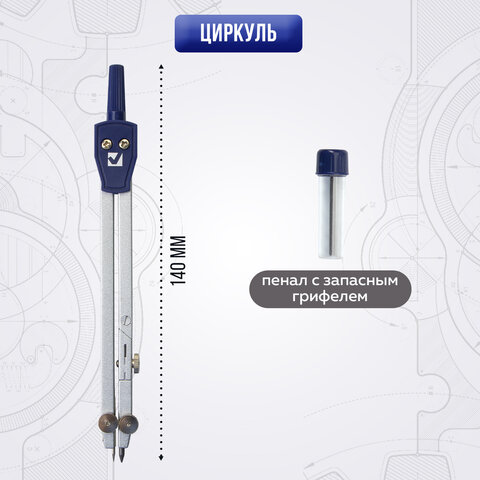 Готовальня BRAUBERG "Student Oxford", 2 предмета: циркуль 140 мм со сгибаемой ножкой, грифель, пенал, 210323