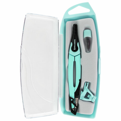 Готовальня BRAUBERG ULTRA, 4 предмета: циркуль 135 мм, запасной грифель, насадка, мятный цвет, 210824