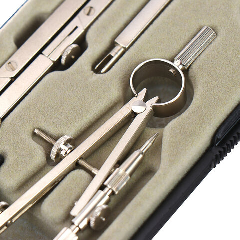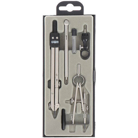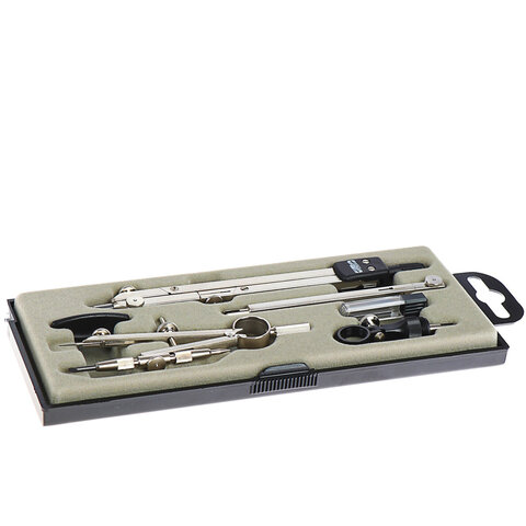 Готовальня в пластиковом пенале с прозрачной крышкой. Наполнение – 6 предметов.