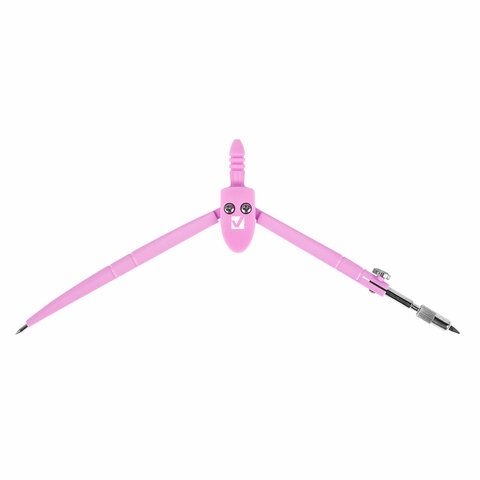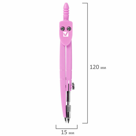 Циркуль BRAUBERG GEOMETRY, 120 мм, пастельно-розовый цвет, защитный колпачок, пластиковый пенал, 210700