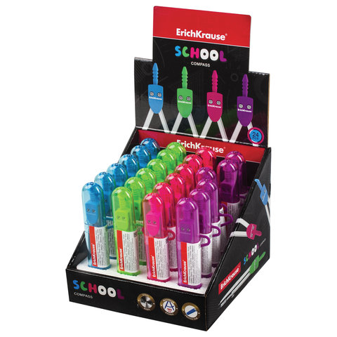 Циркуль ERICH KRAUSE "School", 120 мм, туба, ассорти, дисплей, 31526