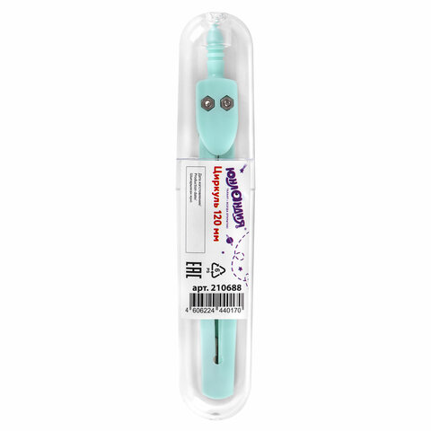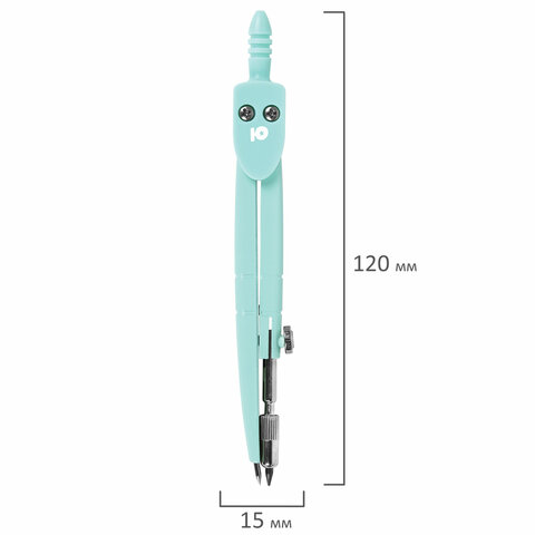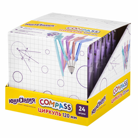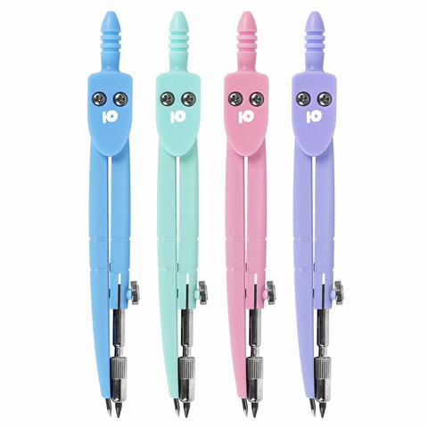 Циркуль ЮНЛАНДИЯ 120 мм, металлический, пастельные цвета ассорти, защитный колпачок, пластиковый пенал, дисплей, 210688