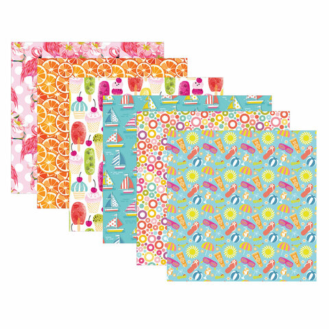 Цветная WASHI-бумага для декора "ЛЕТО", 15х15 см, самоклеящаяся, 12 листов, 6 дизайнов, ОСТРОВ СОКРОВИЩ, 661720