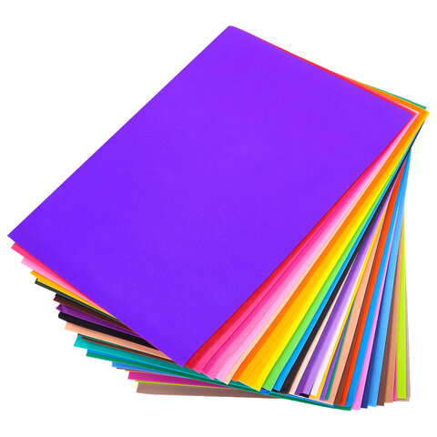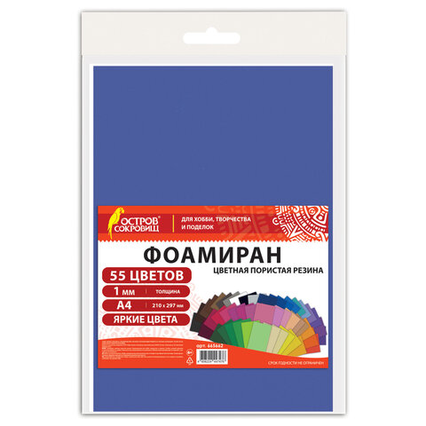 Пористая резина/фоамиран А4, 1 мм, 55 листов, 55 цветов, яркие цвета, ОСТРОВ СОКРОВИЩ, 665662