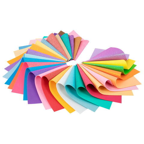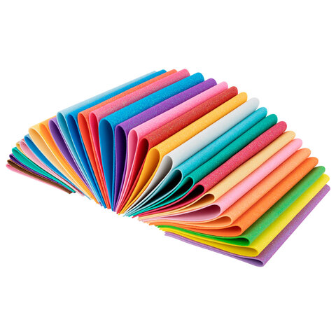 Пористая резина/фоамиран А4, 2 мм, НАБОР, 30 листов, 30 цветов, яркие цвета, блестки, ОСТРОВ СОКРОВИЩ, 665666