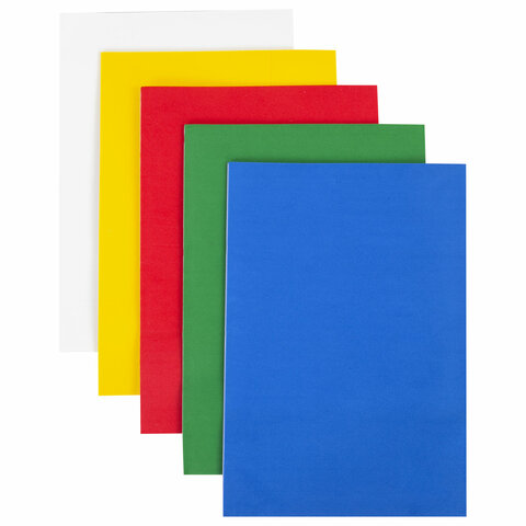 Пористая резина/фоамиран А4, 2 мм, НАБОР, 5 листов, 5 цветов, яркие цвета, самоклеящаяся, ОСТРОВ СОКРОВИЩ, 660080