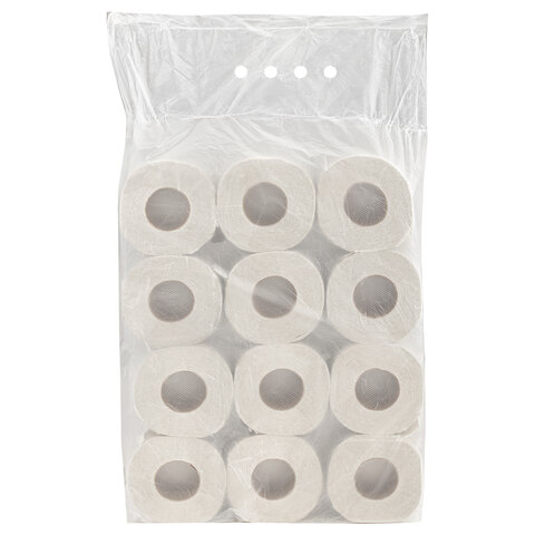 Бумага туалетная бытовая, спайка 12 шт. (12 рулонов х 44 м), СЕРАЯ, на втулке (эконом), М-28