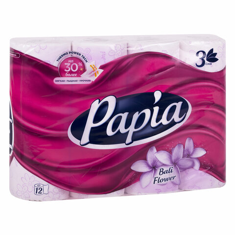Бумага туалетная бытовая, спайка 12 шт., 3-слойная (12х16,8 м), PAPIA, аромат "Балийский цветок", 5080739